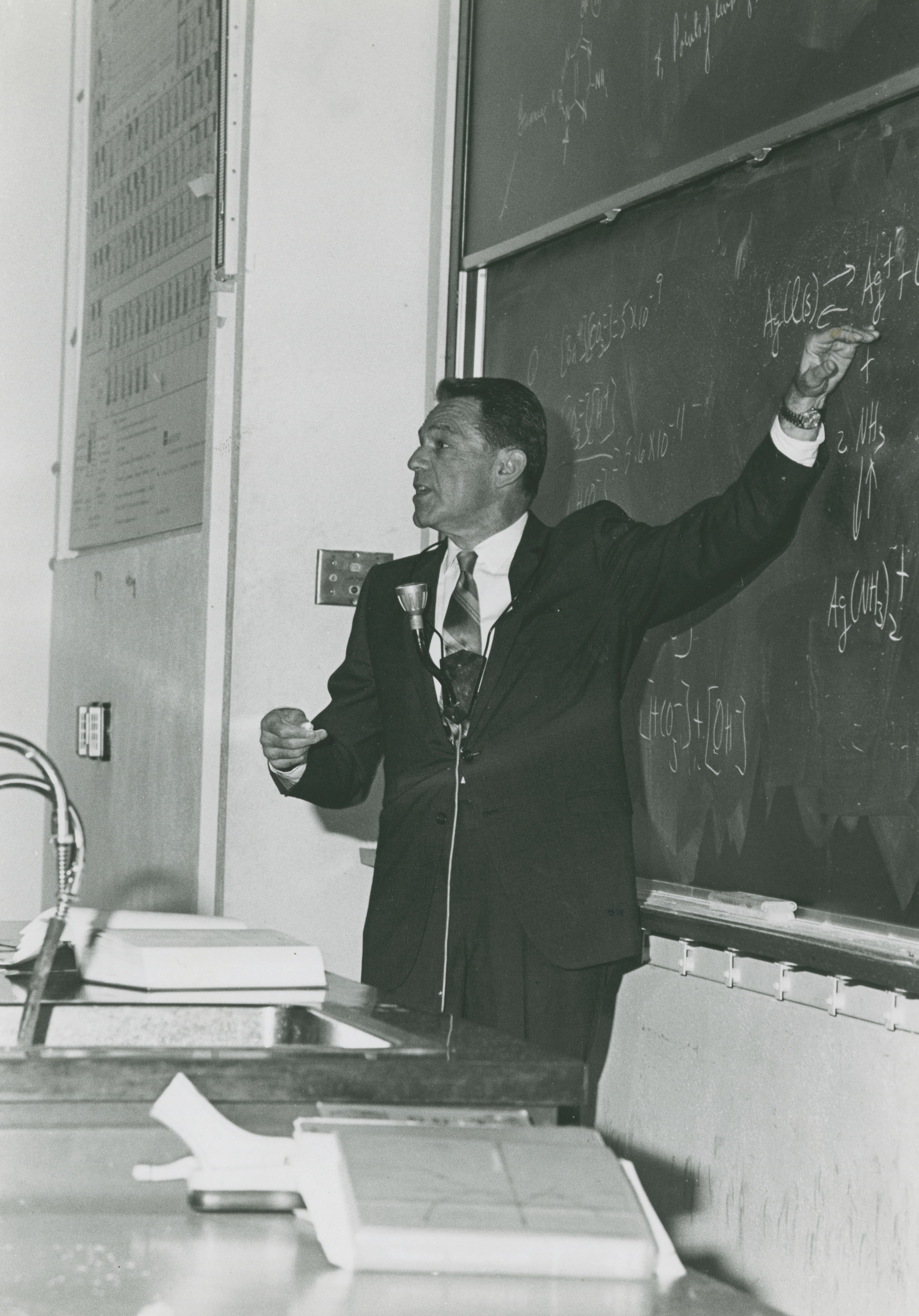 I really get a kick out of this next one. Obviously, it’s Norman Hackerman teaching a Chemistry class. It must have been taken very early in his tenure at Rice–look how young he is! I assume that’s a microphone of some sort, but ye gods what an ungainly device. I hope it’s existence was fleeting.